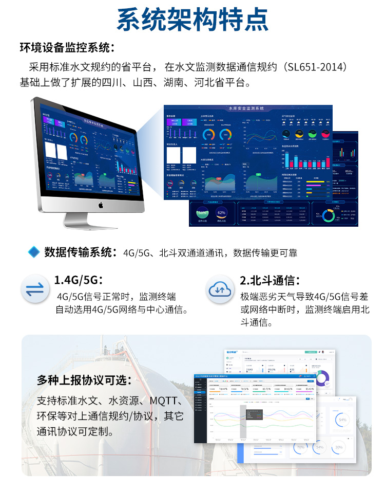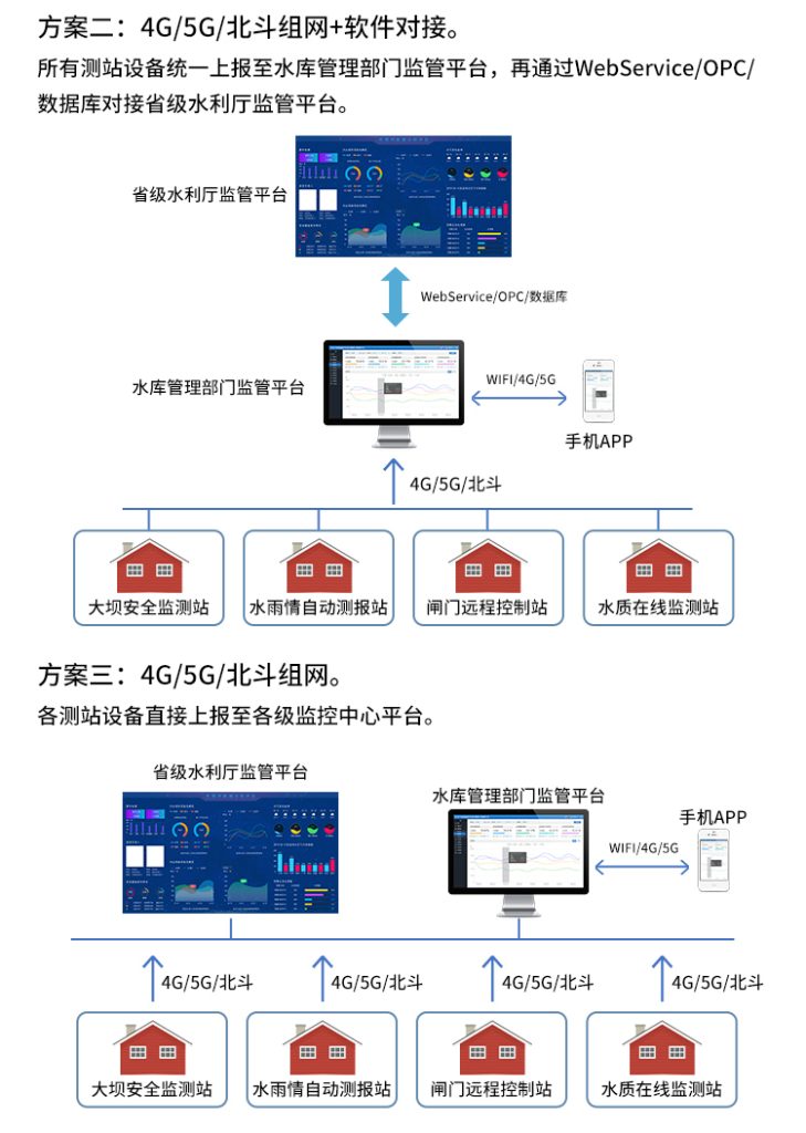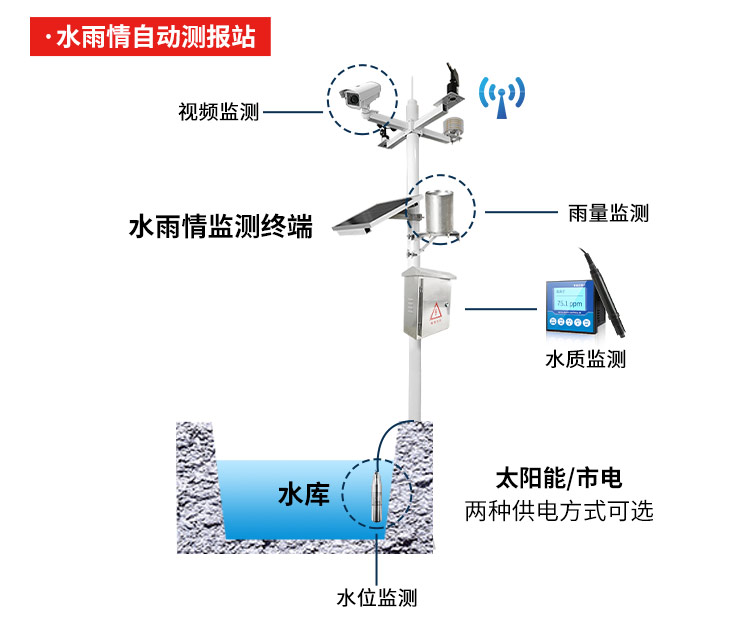 监测内容:水位、流量、流速、降雨量、水质等,支持无线通讯方式,上传监测平台,支持无人值守,提高工作效率