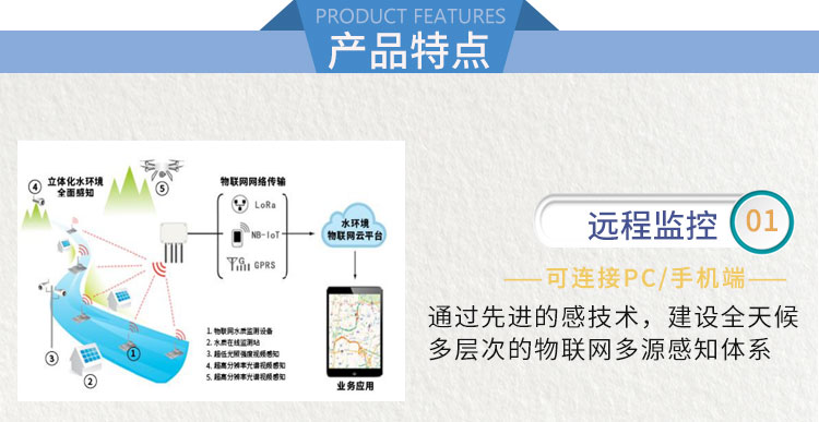 监测内容:水位、流量、流速、降雨量、水质等,支持无线通讯方式,上传监测平台,支持无人值守,提高工作效率